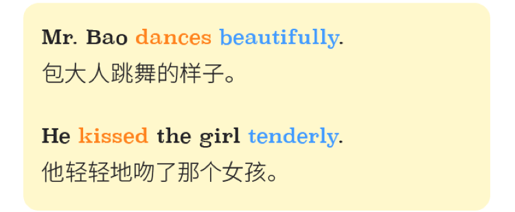 这里 tenderly 放在了 girl 的后面, girl 是 宾语,宾语 肯定也很重要啦, 所以 副词 tenderly 就再往后面站! 但是,在背后的男人, 也总会有在人前的时候。