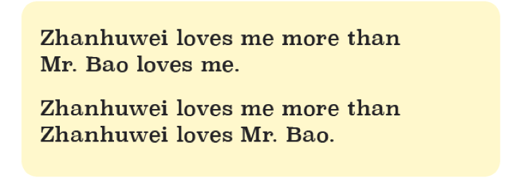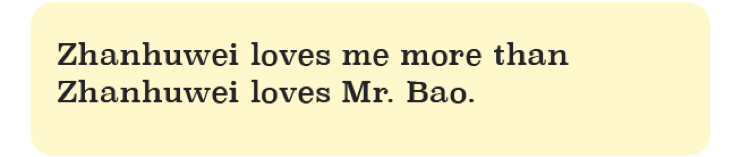 到底是斩护卫爱你 比包大人爱你多, 还是, 斩护卫爱包大人比爱你多呢。 为了区分意思,所以我们只能说,