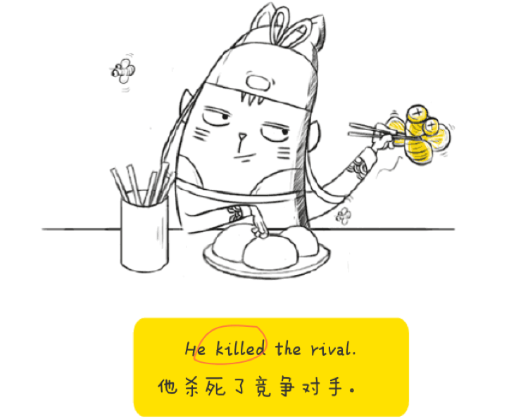 例句中的「谓语动词」是(kill),杀,「主语」(he),得有个被杀的对象,才算完整。而这个对象,我们就叫它「宾语」。